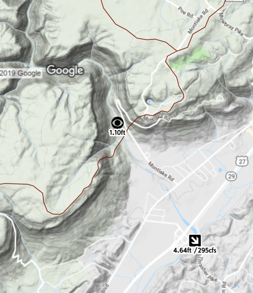 Each day, Rain Pursuit ingests approximately 40,000 rainfall readings and 67,000 streamflow readings. Although the web interfaces rarely query data that’s older than 7 days, I’ve used historic data to build correlations for streams that lack online gauges or to translate the online readings to other gauges that paddlers are more familiar with. Paddlers were very glad to see a new USGS gauge for the very popular North Chickamauga Creek, located north of Chattanooga, after the previous gauge had been discontinued years before. But nobody knew how the new USGS gauge readings translated to the familiar visual gauge at the take-out for the run. These days, boaters help each other by posting visual gauge readings on Facebook: